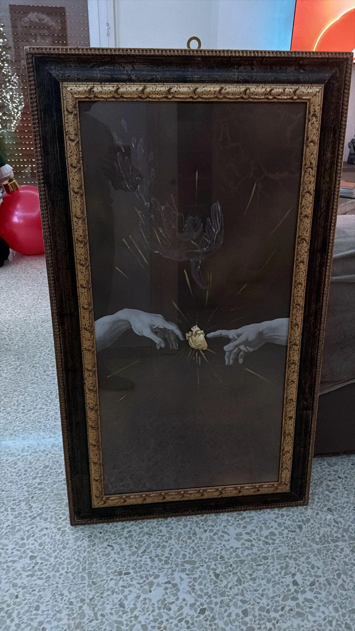 Questa è una reinterpretazione della Creazione di Adamo, ma qualcosa è cambiato: Dio non sta più donando la vita, sta lasciando andare. Lucifero, cade dall’alto, strappato dalla luce. Le due mani non si sfiorano per generare l’uomo, ma si dividono su un cuore dorato: simbolo dell’amore, del potere, della scelta.